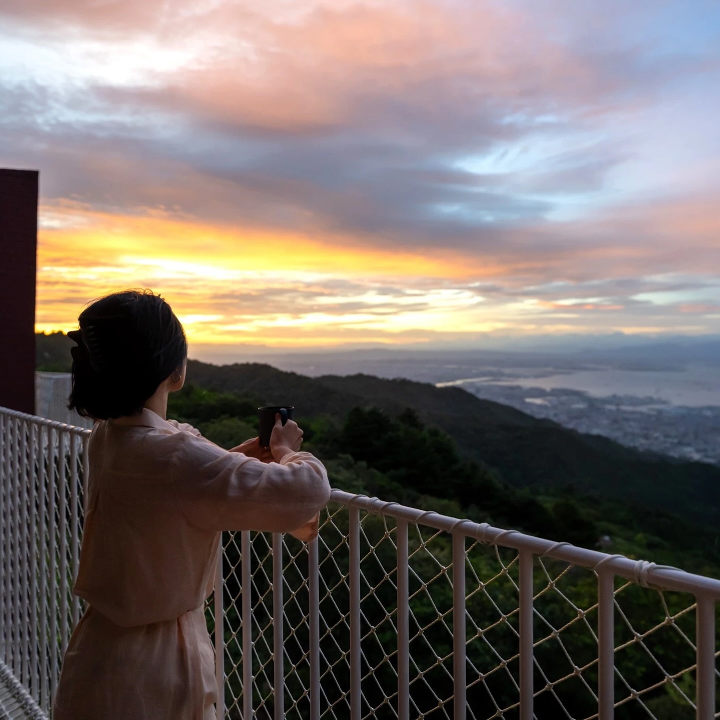Surrounded by the scent of the forest, the spectacular view of the sky, city, and sea fused together will take your breath away.